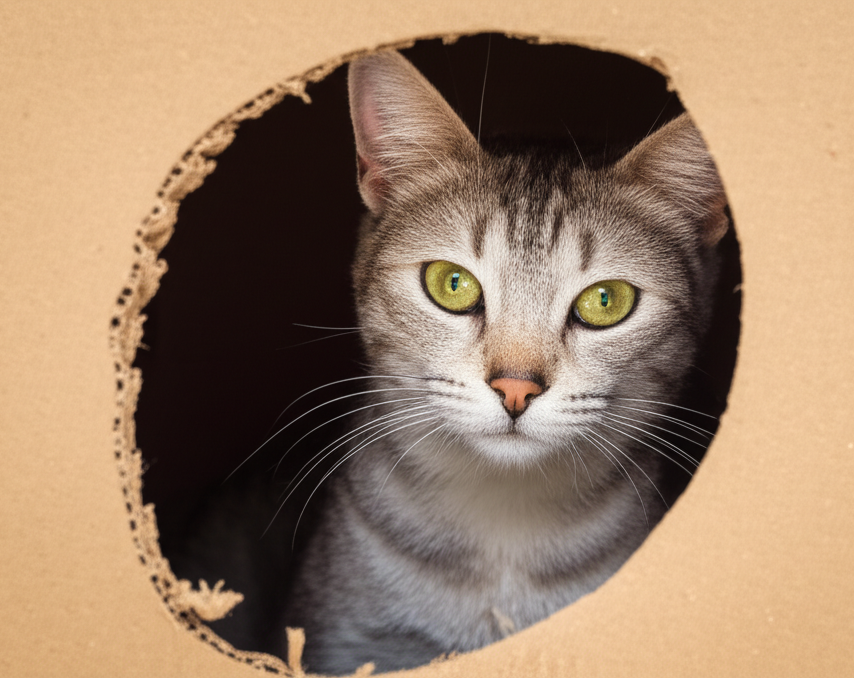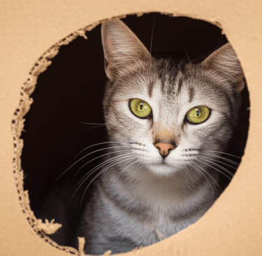 Caixas de papelão: O item mais barato e amado pelos felinos. Uma simples caixa pode se tornar o castelo ou a caverna secreta do seu gato.